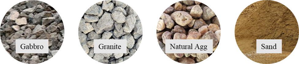 In Sudan, although gabbro is found in several regions including northeastern Khartoum, the Nuba Mountains, the Red Sea Mountains, the Ingessana Hills, and parts of Darfur its application in structural concrete remains minimal. The construction sector predominantly depends on natural uncrushed aggregates or granite, the latter incurring higher costs and transport-related emissions. Comparative evaluations of gabbro’s performance in local contexts are rare, highlighting a significant gap in engineering research [12,13].