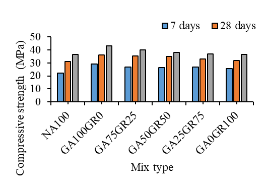 Figure 5. Compressive strength of M25 concrete at different ages.